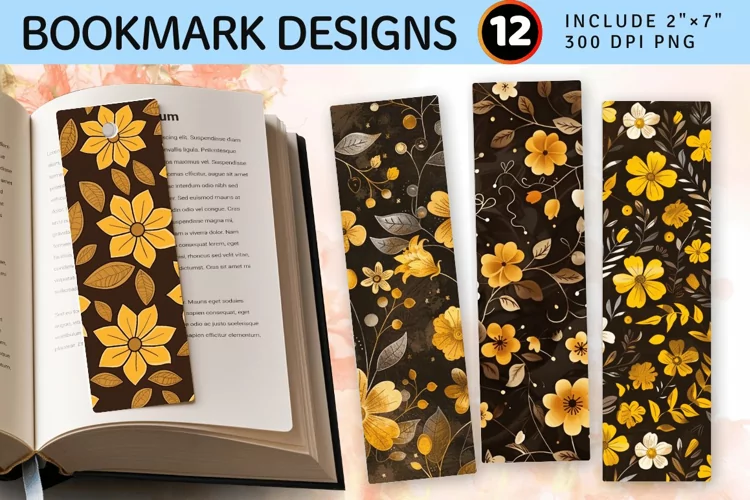 Brown & Yellow Floral PNG Bookmark Sublimation Designs
