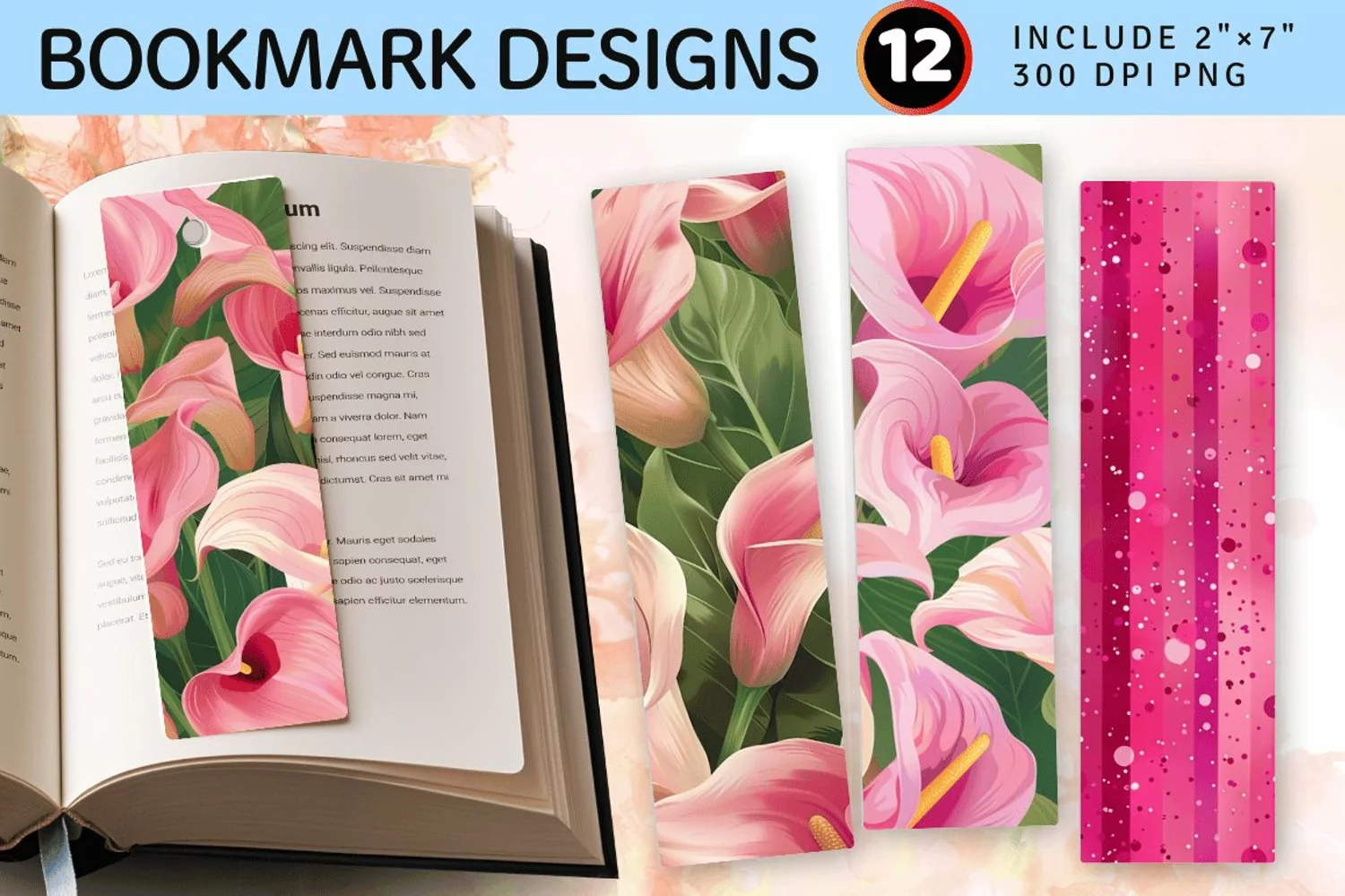 Pink Calla Lily Flowers PNG Bookmark Sublimation Designs