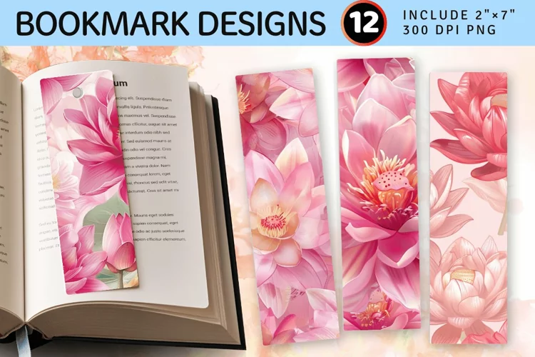 Pink Lotus Flowers PNG Bookmark Sublimation Designs