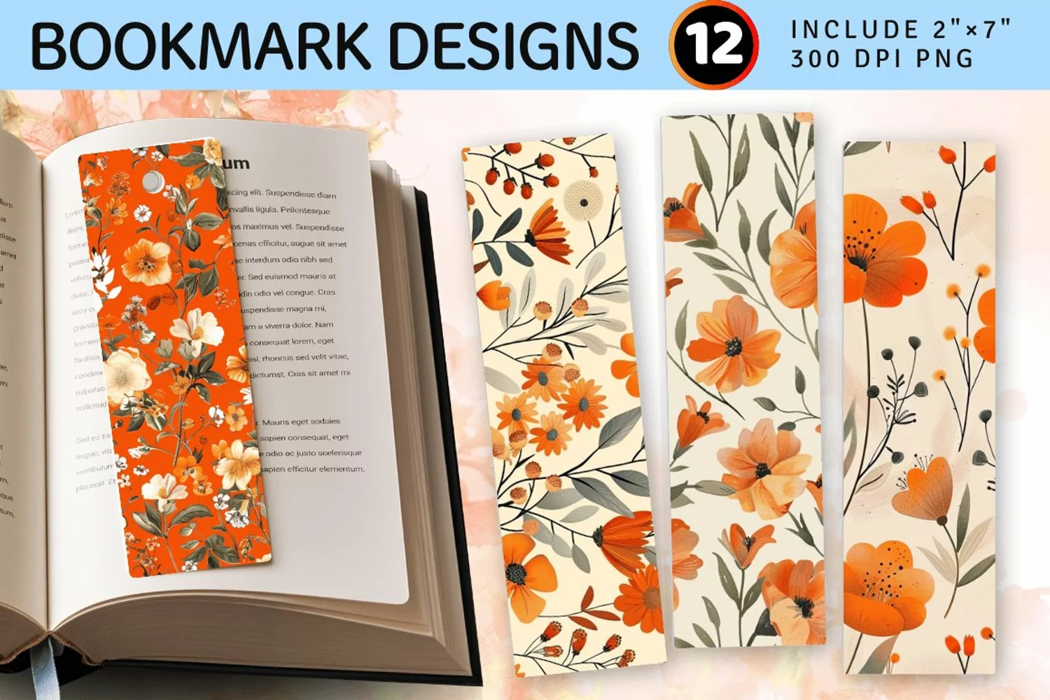 Orange Botanical Flowers PNG Bookmark Sublimation Designs