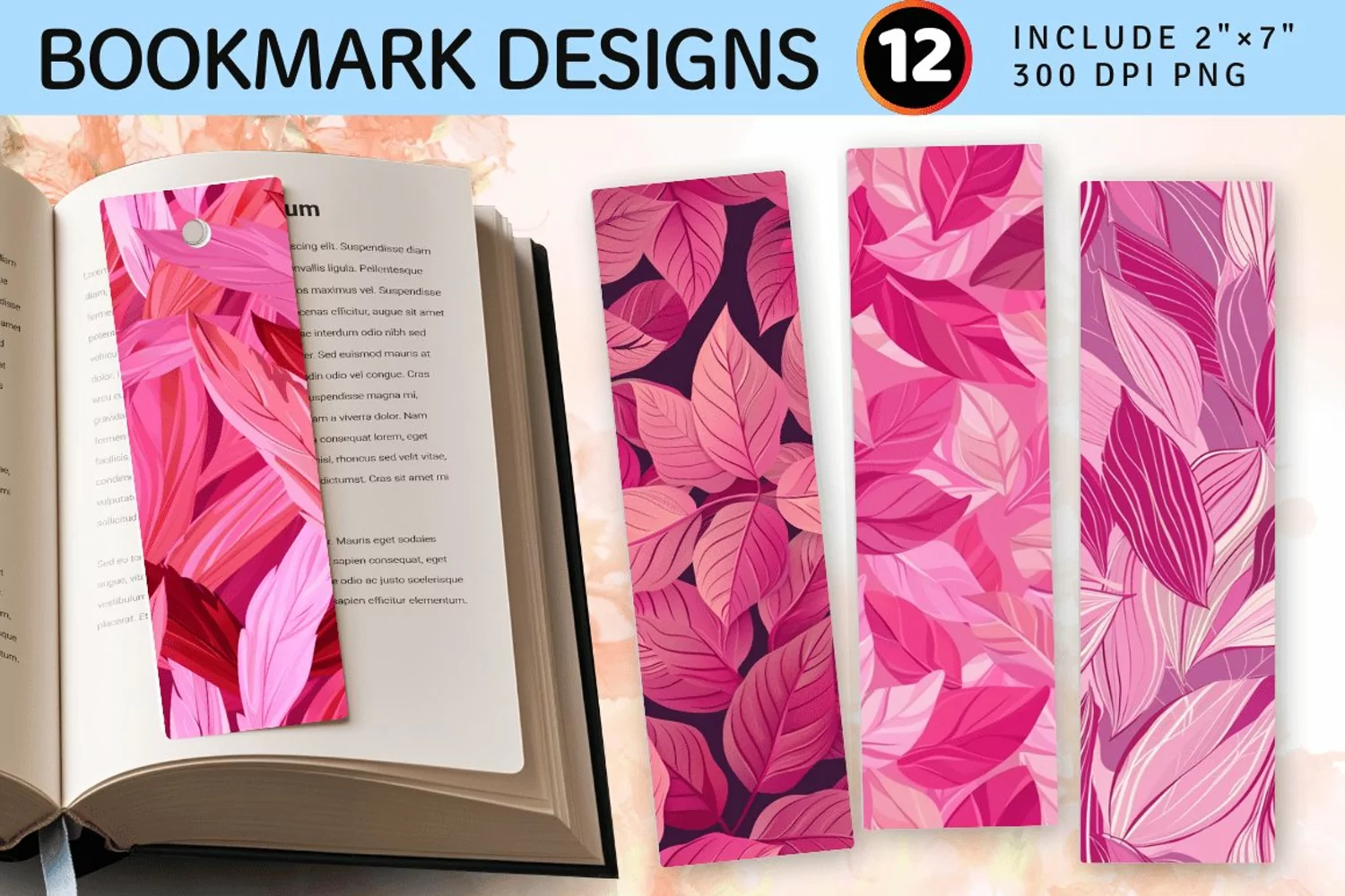 Pink Abstract Leaves PNG Bookmark Sublimation Designs
