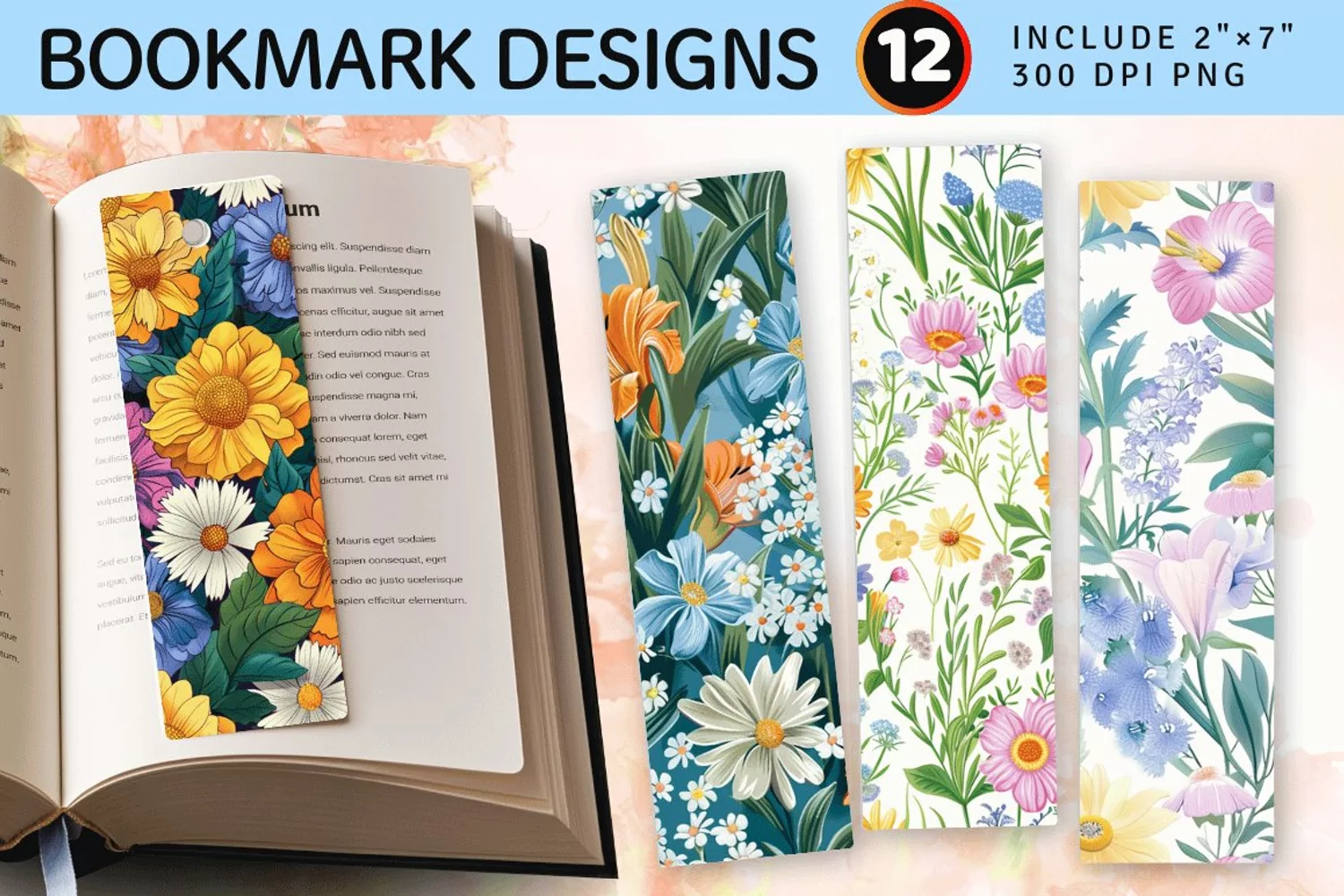 Delicate Flowers Garden PNG Bookmark Sublimation Designs