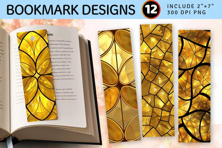 Gold Stained Glass PNG Bookmark Sublimation Designs