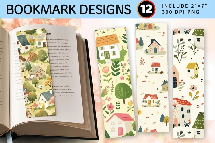 Cottage core Garden Houses PNG Bookmark Sublimation Designs