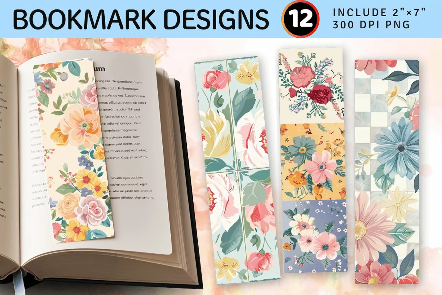 Pastel Bouquet Quilt PNG Bookmark Sublimation Designs