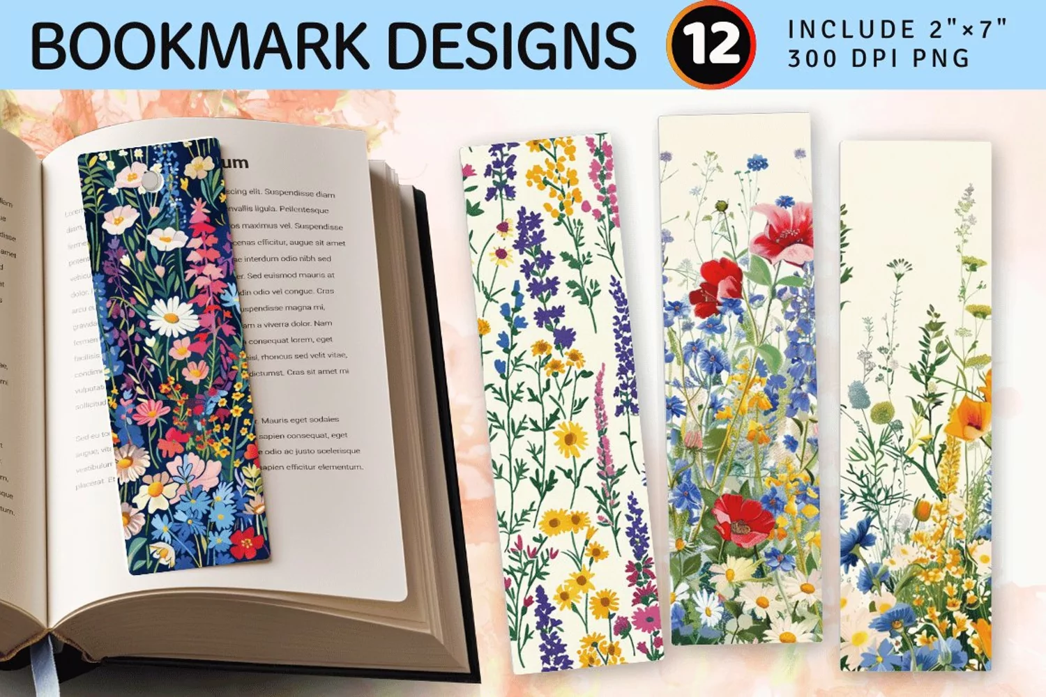 Wildflowers Garden Stitch Fabric PNG Bookmark Sublimation Designs