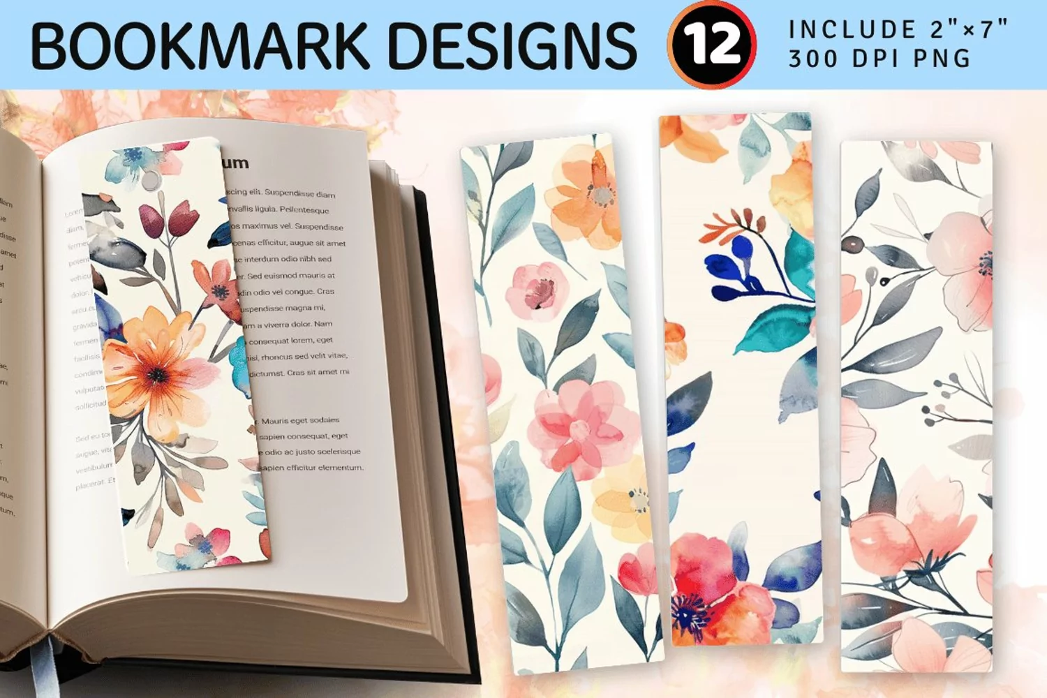 Delicate Watercolor Floral PNG Bookmark Sublimation Designs