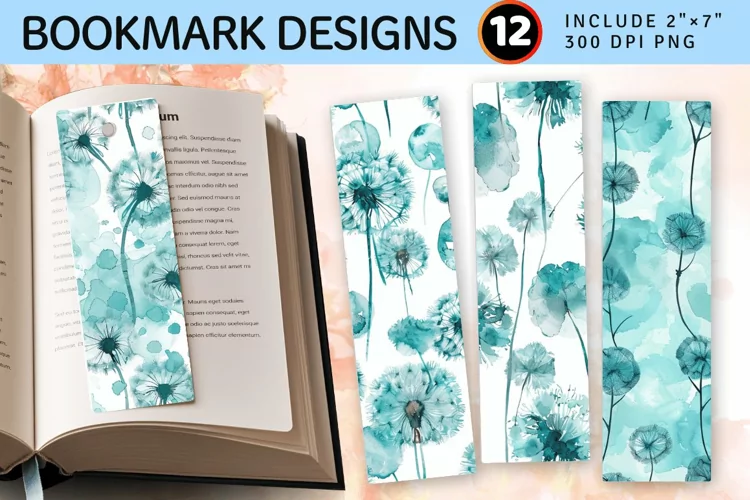 Watercolor Teal Dandelions PNG Bookmark Sublimation Designs