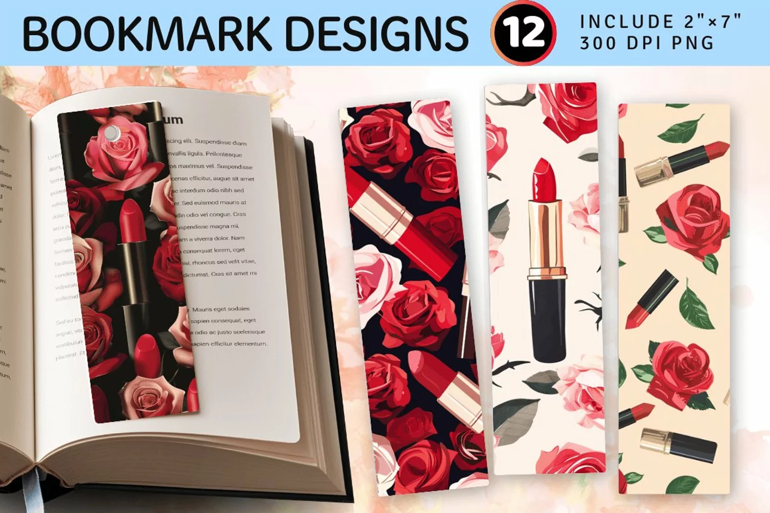 Lipsticks & Roses PNG Bookmark Sublimation Designs