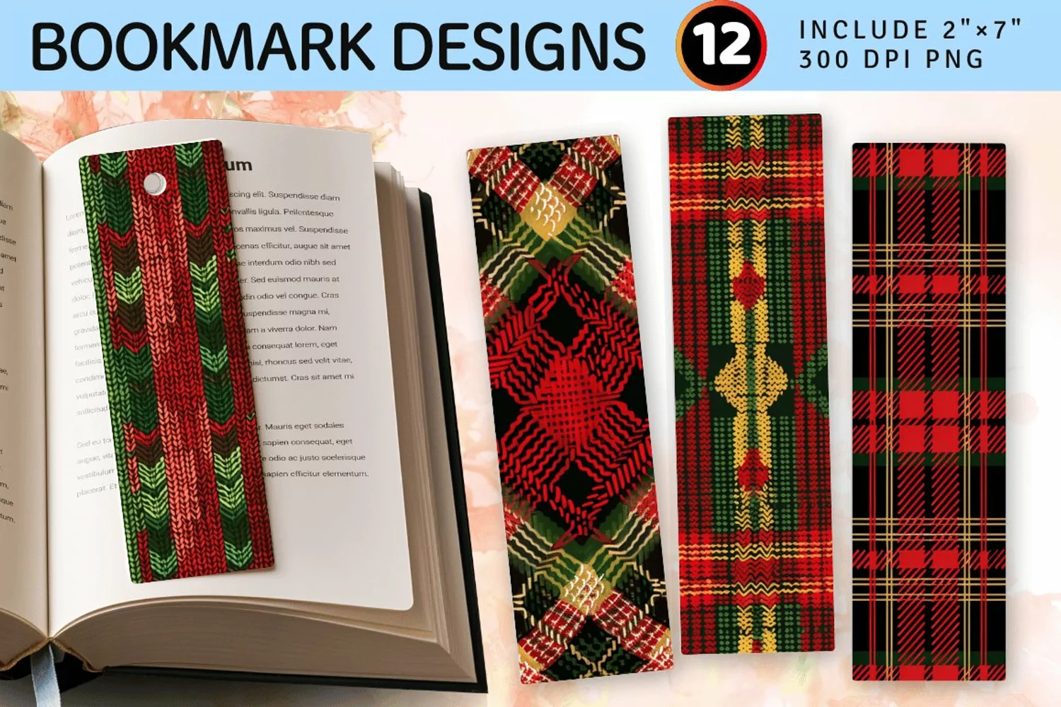 Red Green Knitted Plaids Fabric PNG Bookmark Sublimation Designs