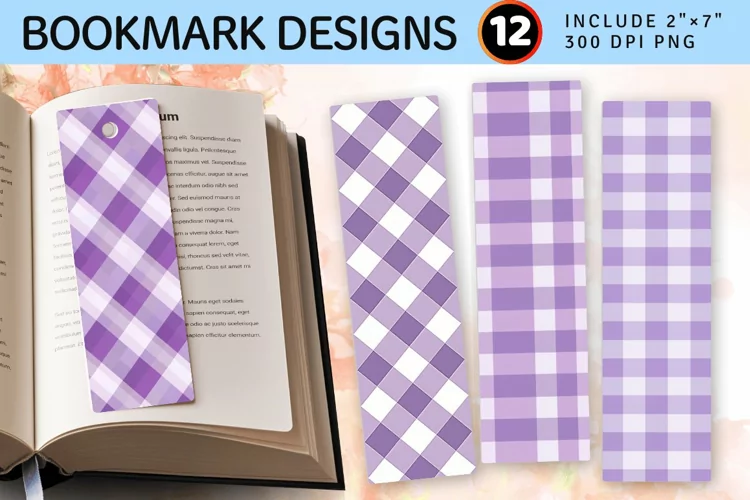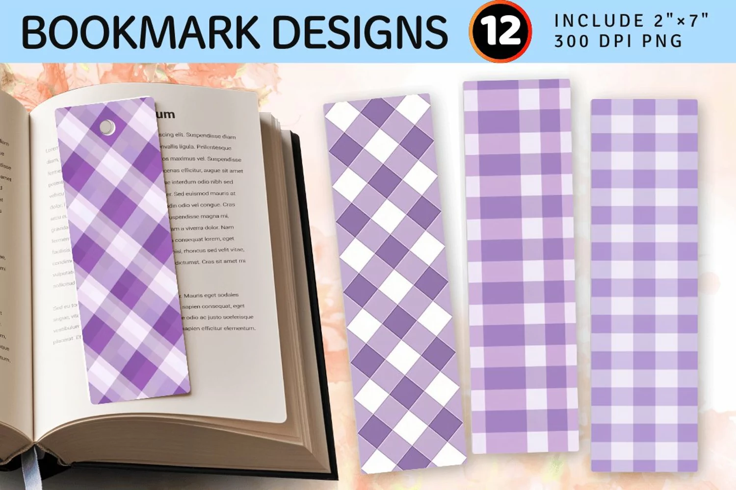 Lavender Purple Gingham Plaids PNG Bookmark Sublimation Designs