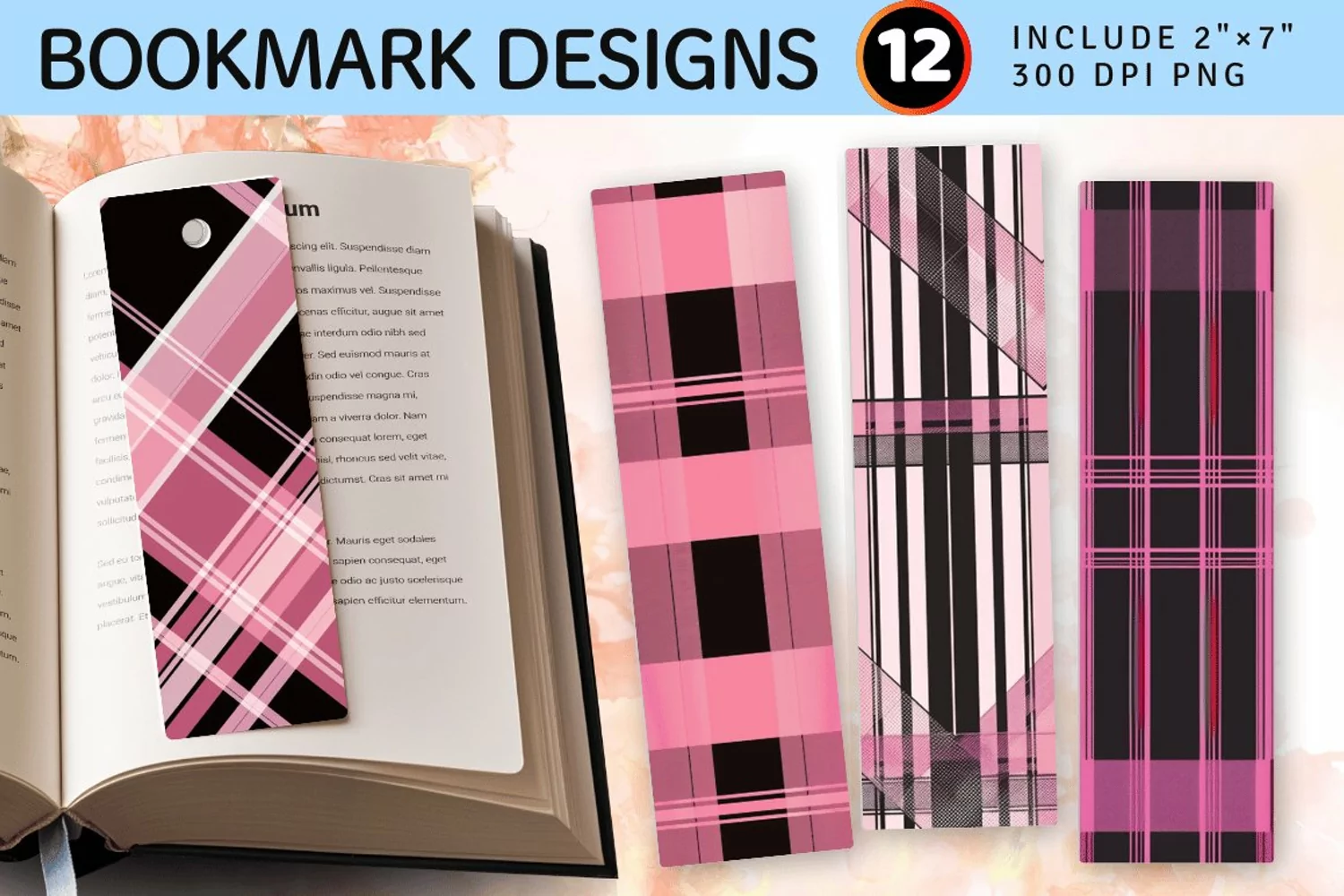 Pink & Black Plaid Stripes PNG Bookmark Sublimation Designs