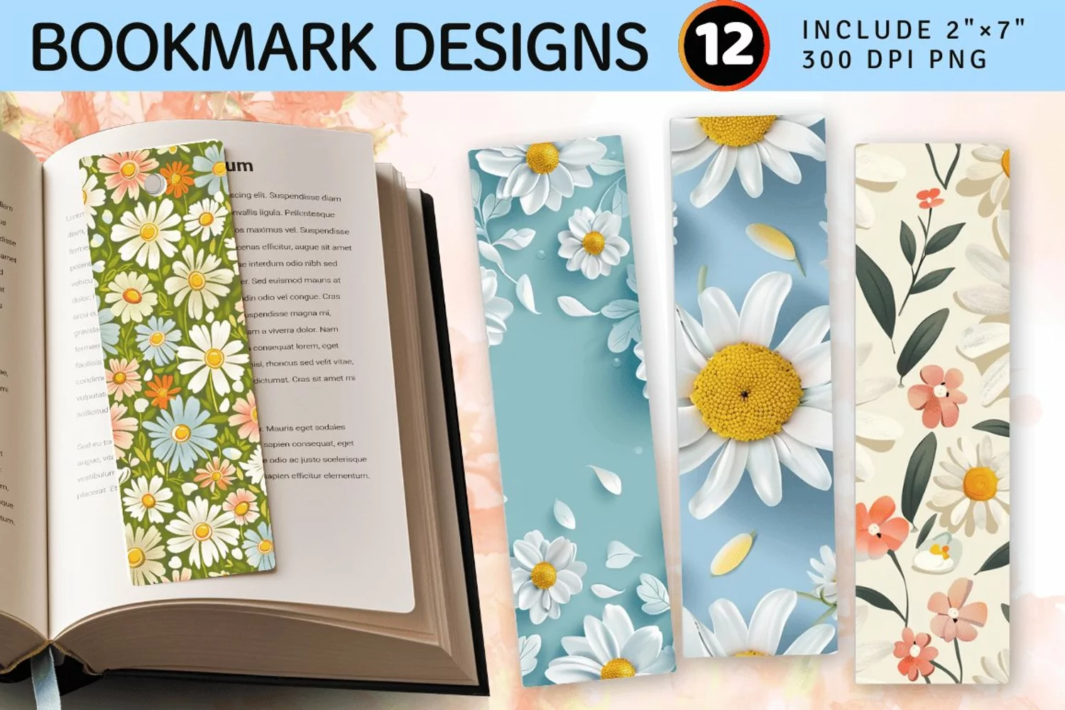Spring Themed Daisy Floral PNG Bookmark Sublimation Designs