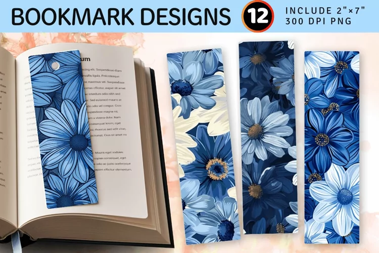 Blue Daisy Floral PNG Bookmark Sublimation Designs