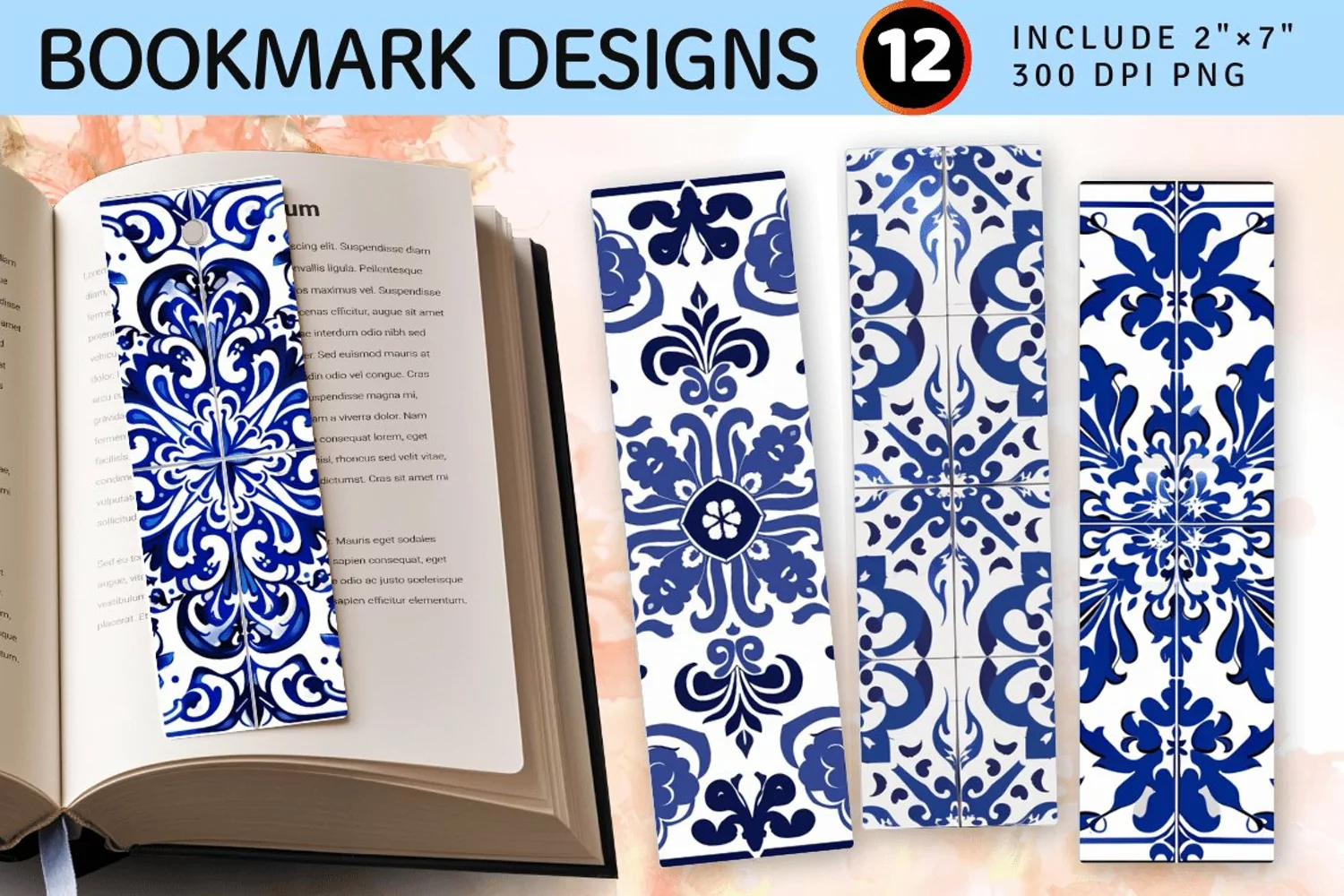 Portuguese Azulejo Blue Delft PNG Bookmark Sublimation Designs