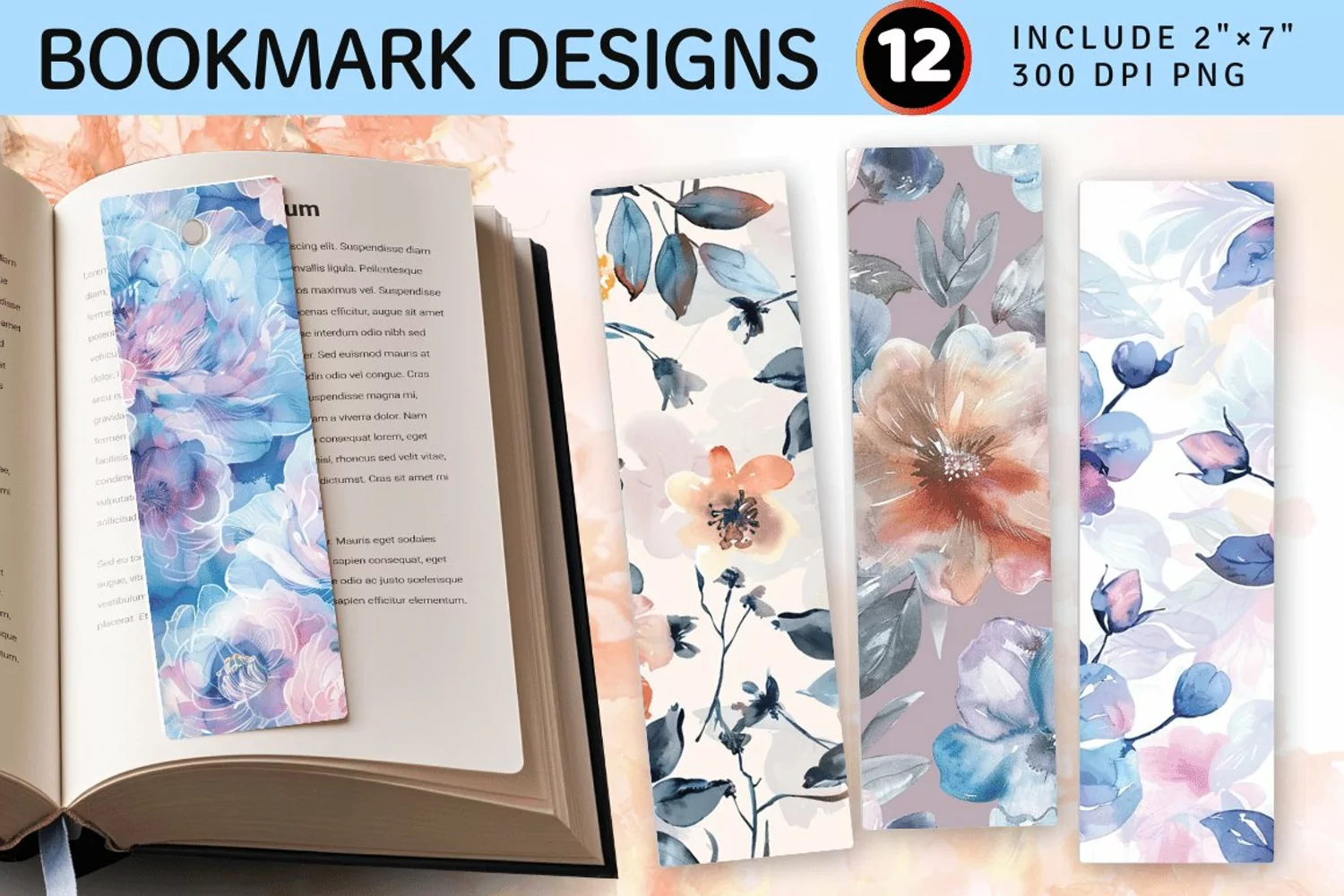 Pastel Watercolor Floral Fabric PNG Bookmark Sublimation Designs