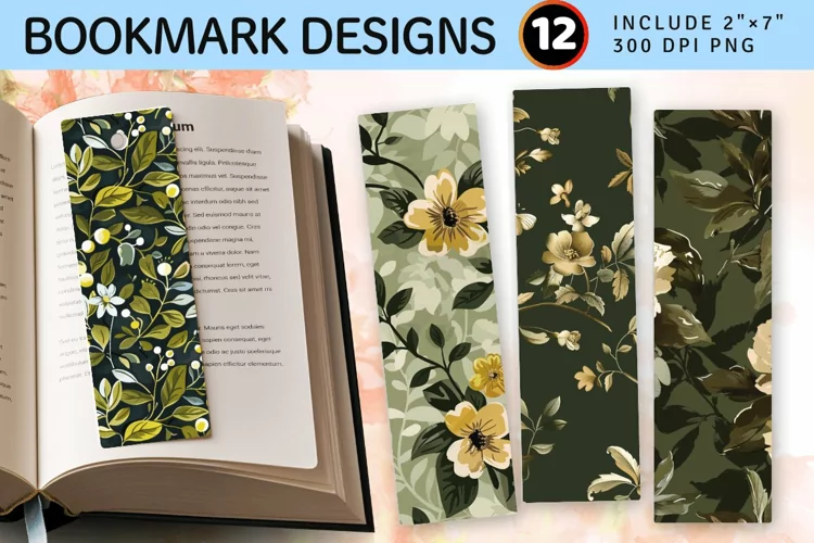 Olive Floral Print Fabric PNG Bookmark Sublimation Designs