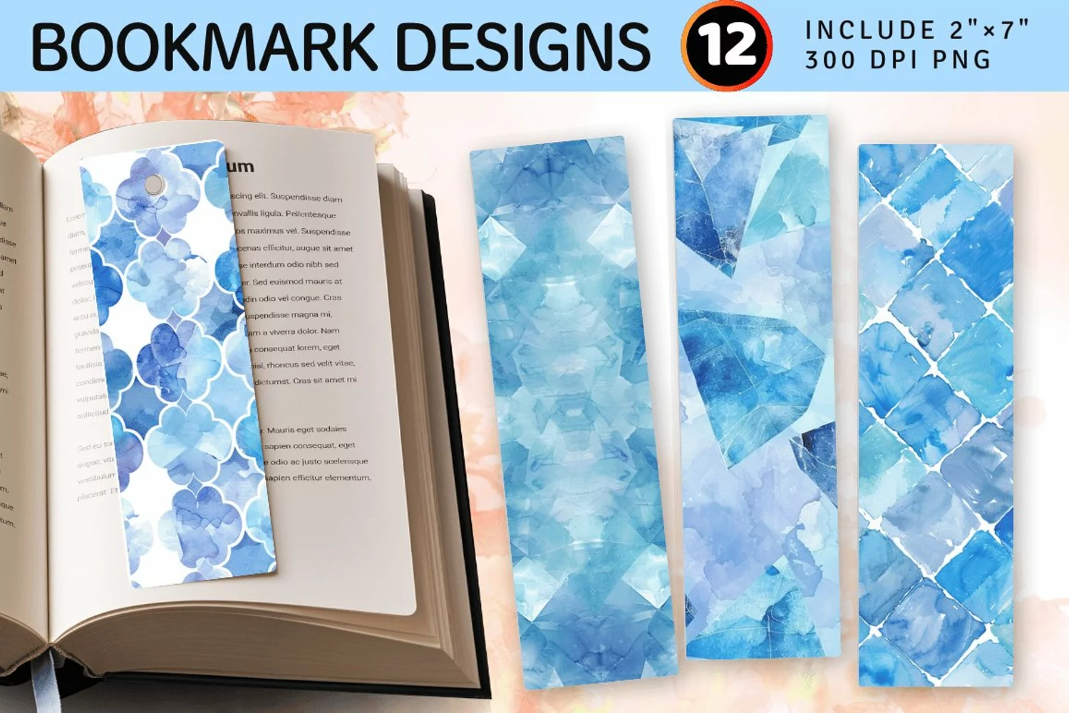 Watercolor Pastel Sapphire Blue PNG Bookmark Sublimation Designs