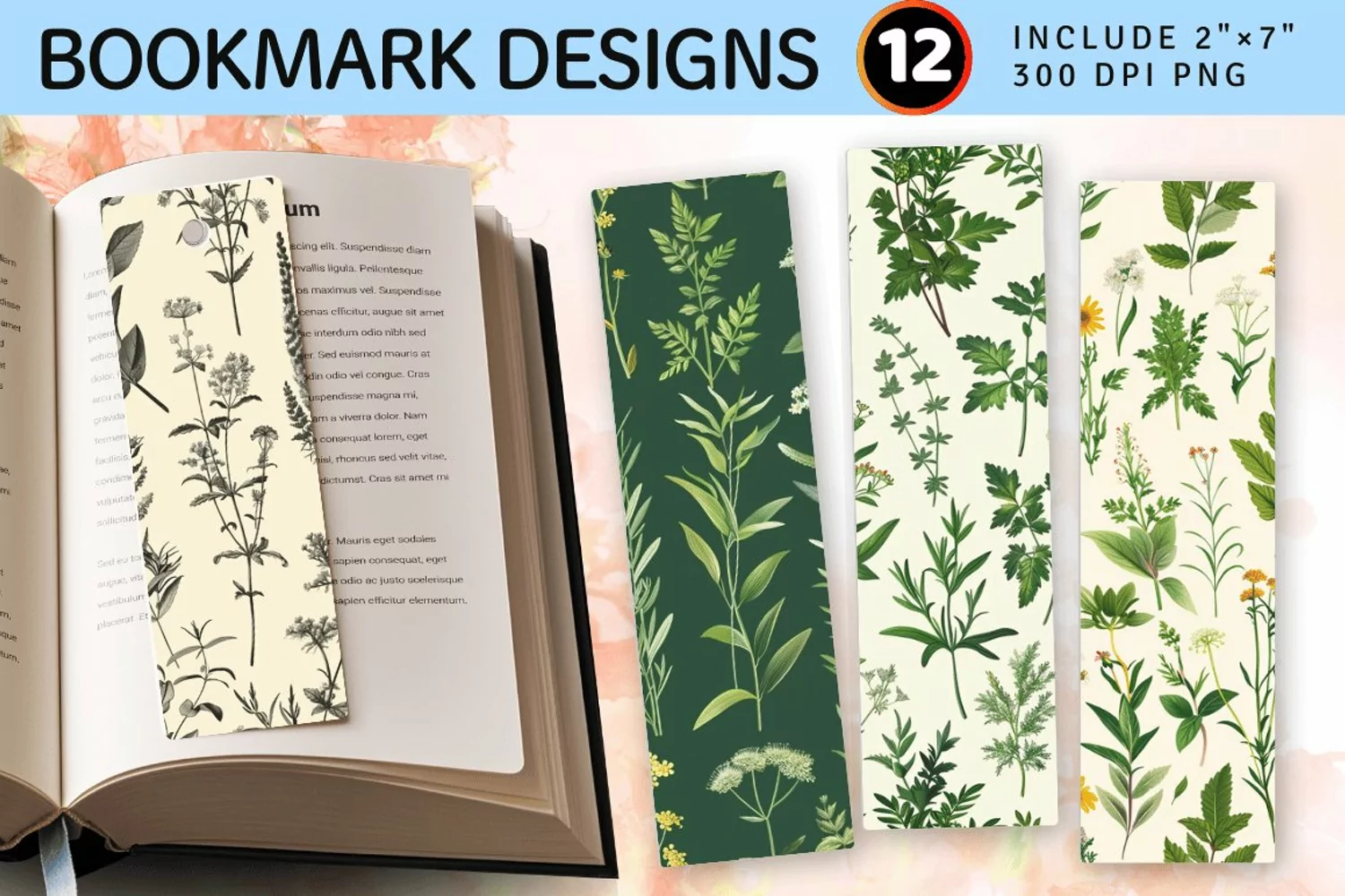 Cottage core Botanical Herbs PNG Bookmark Sublimation Designs