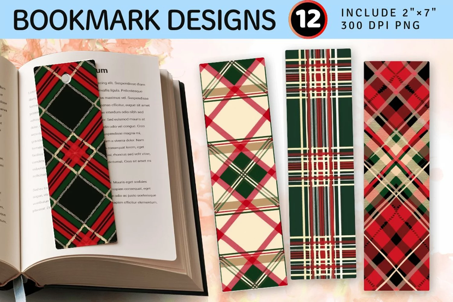 Christmas Plaid PNG Bookmark Sublimation Designs