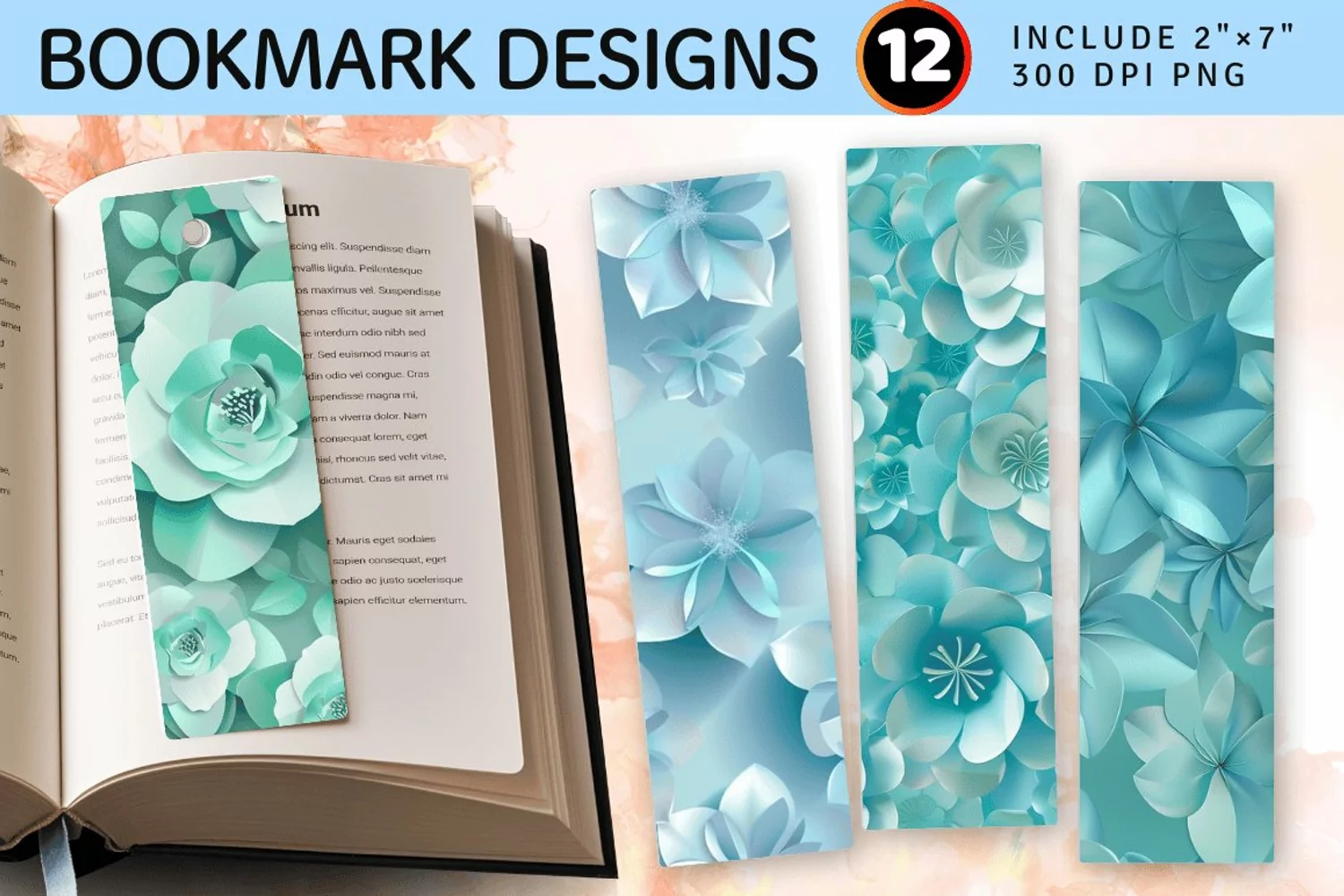 Floral Aquamarine Flowers PNG Bookmark Sublimation Designs