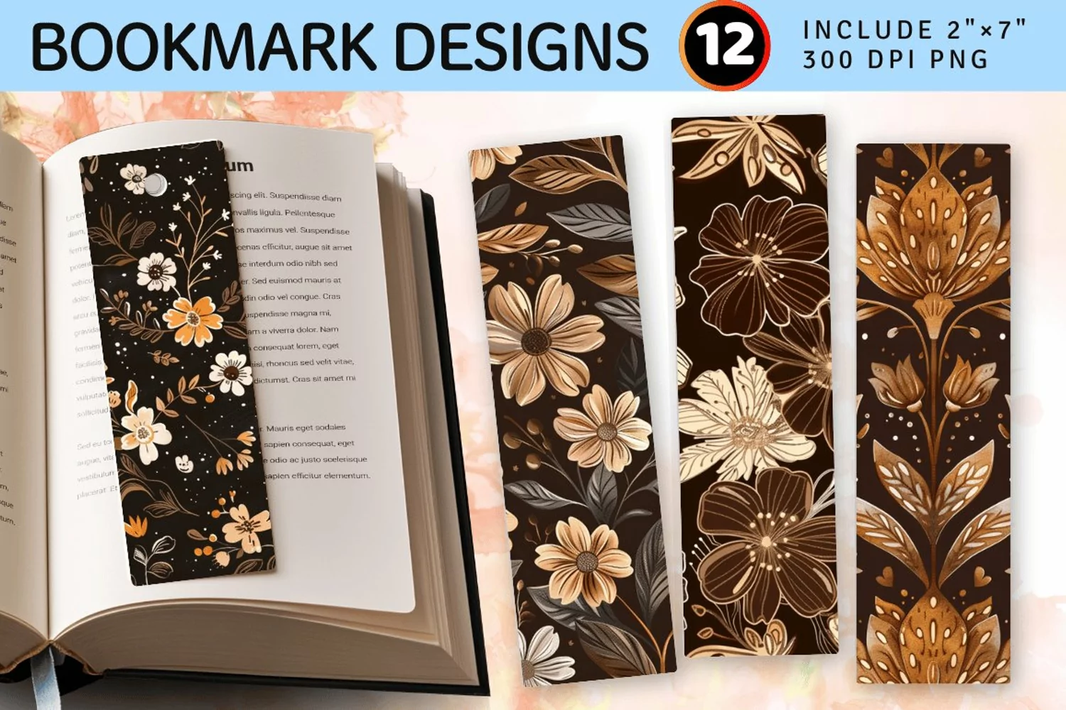Brown Boho Floral PNG Bookmark Sublimation Designs