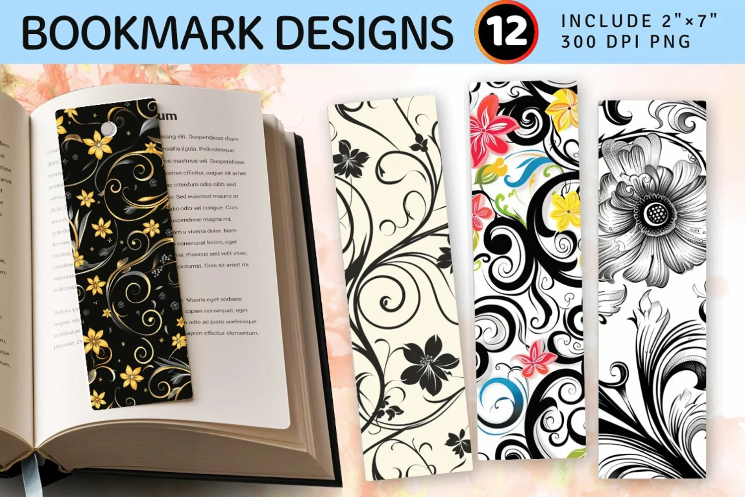 Swirling Flowers PNG Bookmark Sublimation Designs