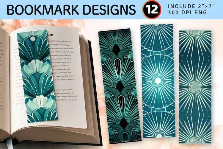 Teal Art Deco Radiance PNG Bookmark Sublimation Designs
