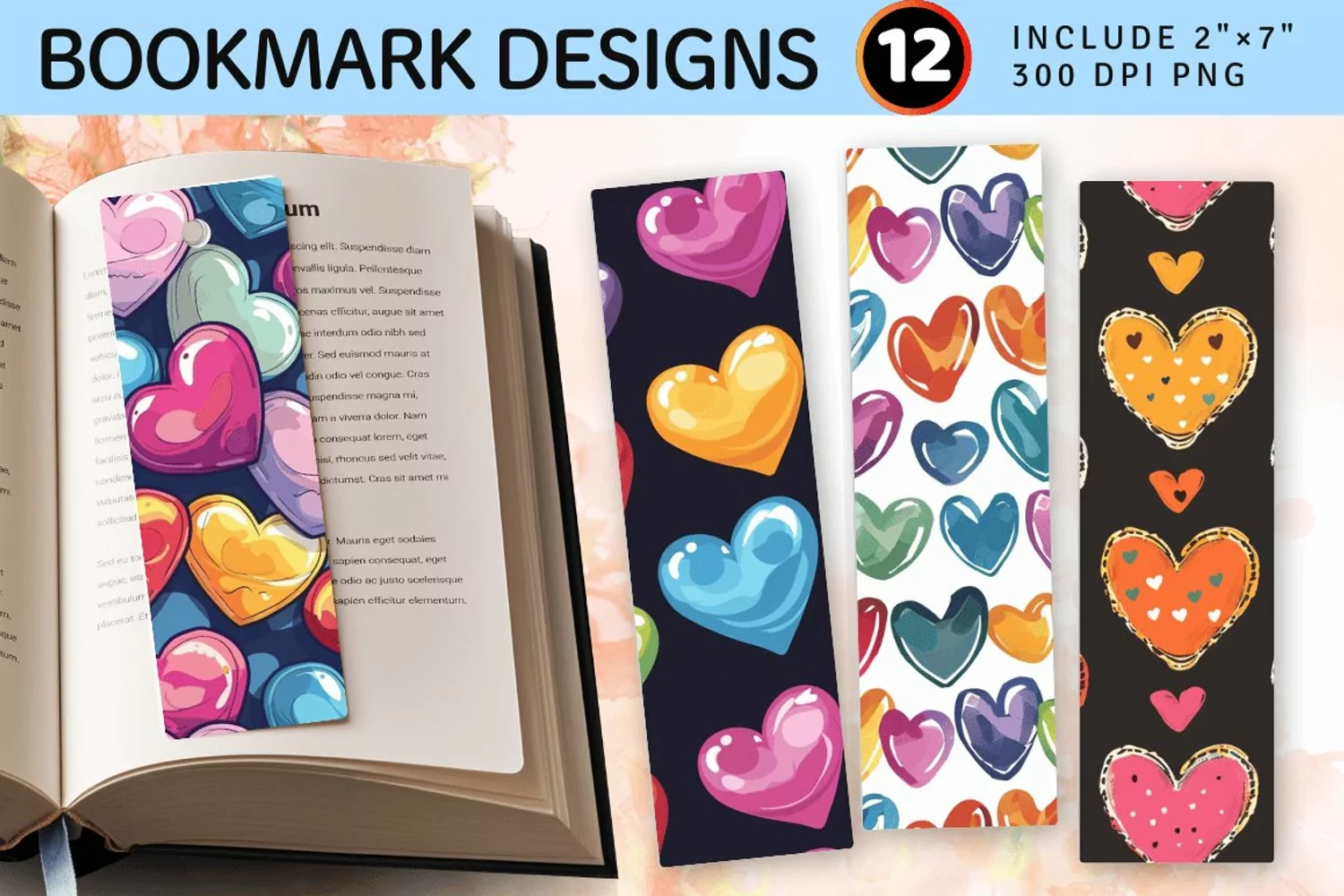 Colorful Love Hearts PNG Bookmark Sublimation Designs