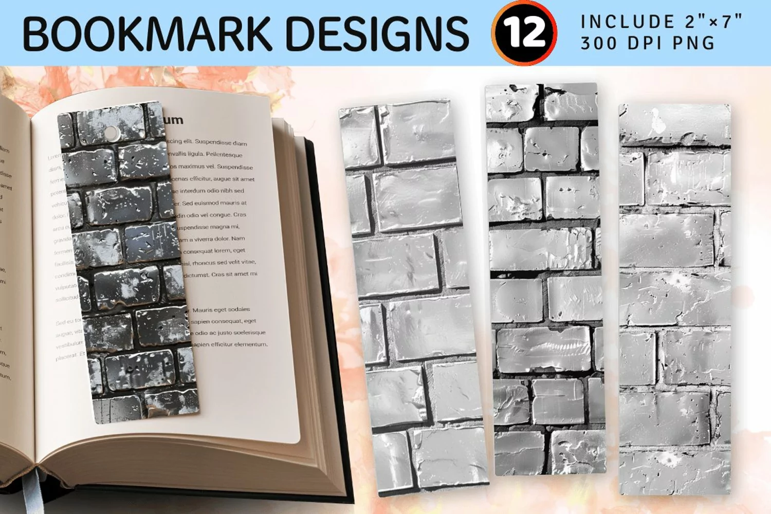 Silver Brick Wall PNG Bookmark Sublimation Designs