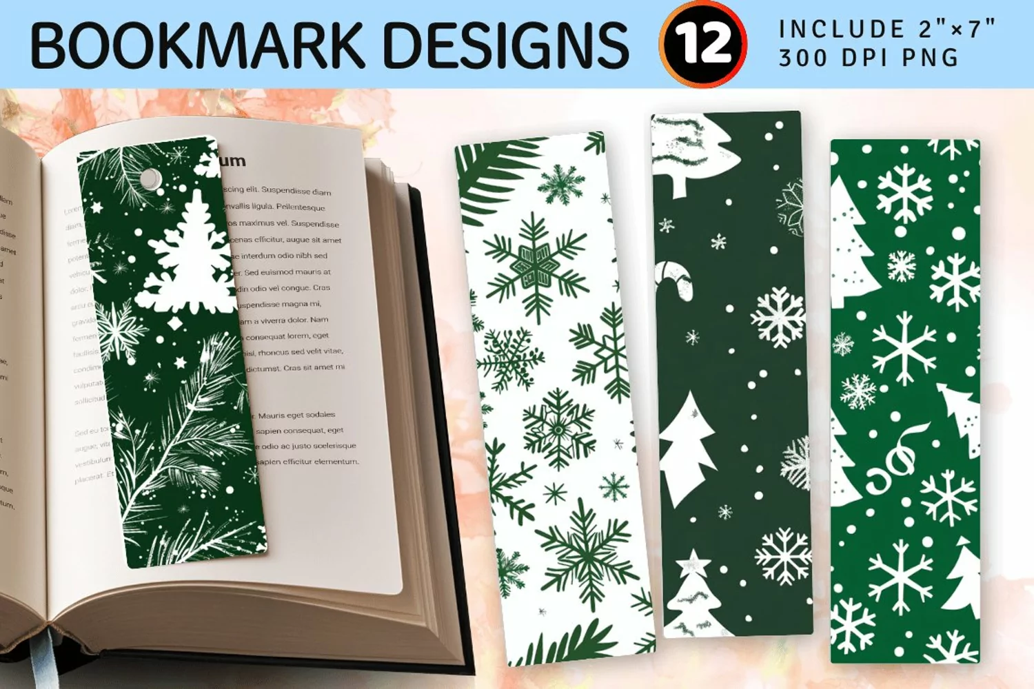 Green and White Christmas PNG Bookmark Sublimation Designs