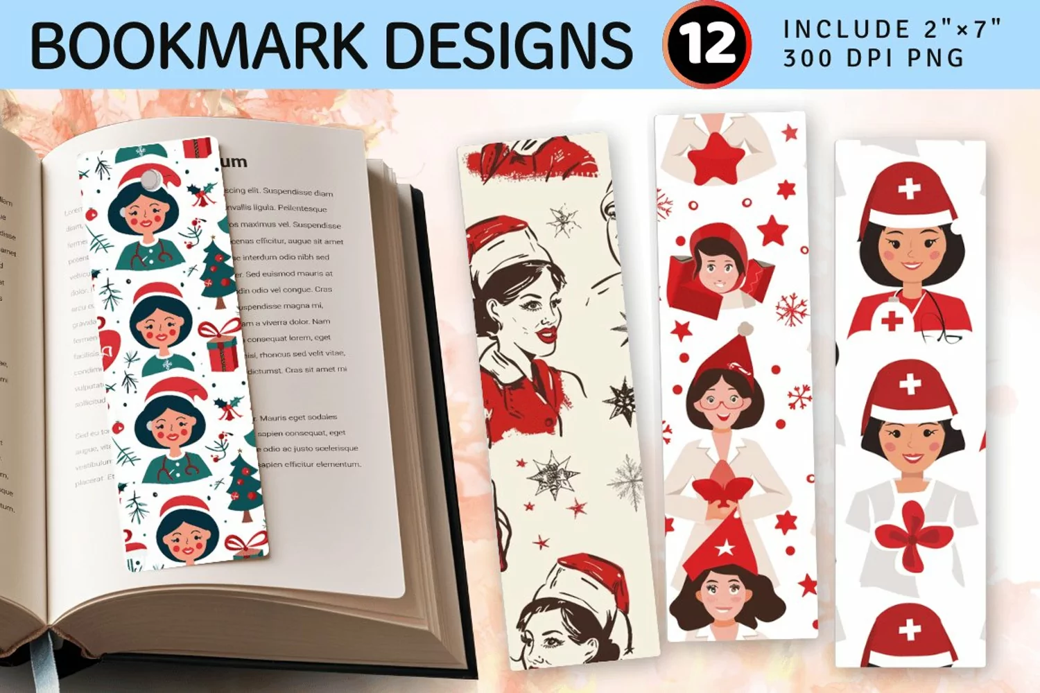 Merry Nurse Christmas PNG Bookmark Sublimation Designs