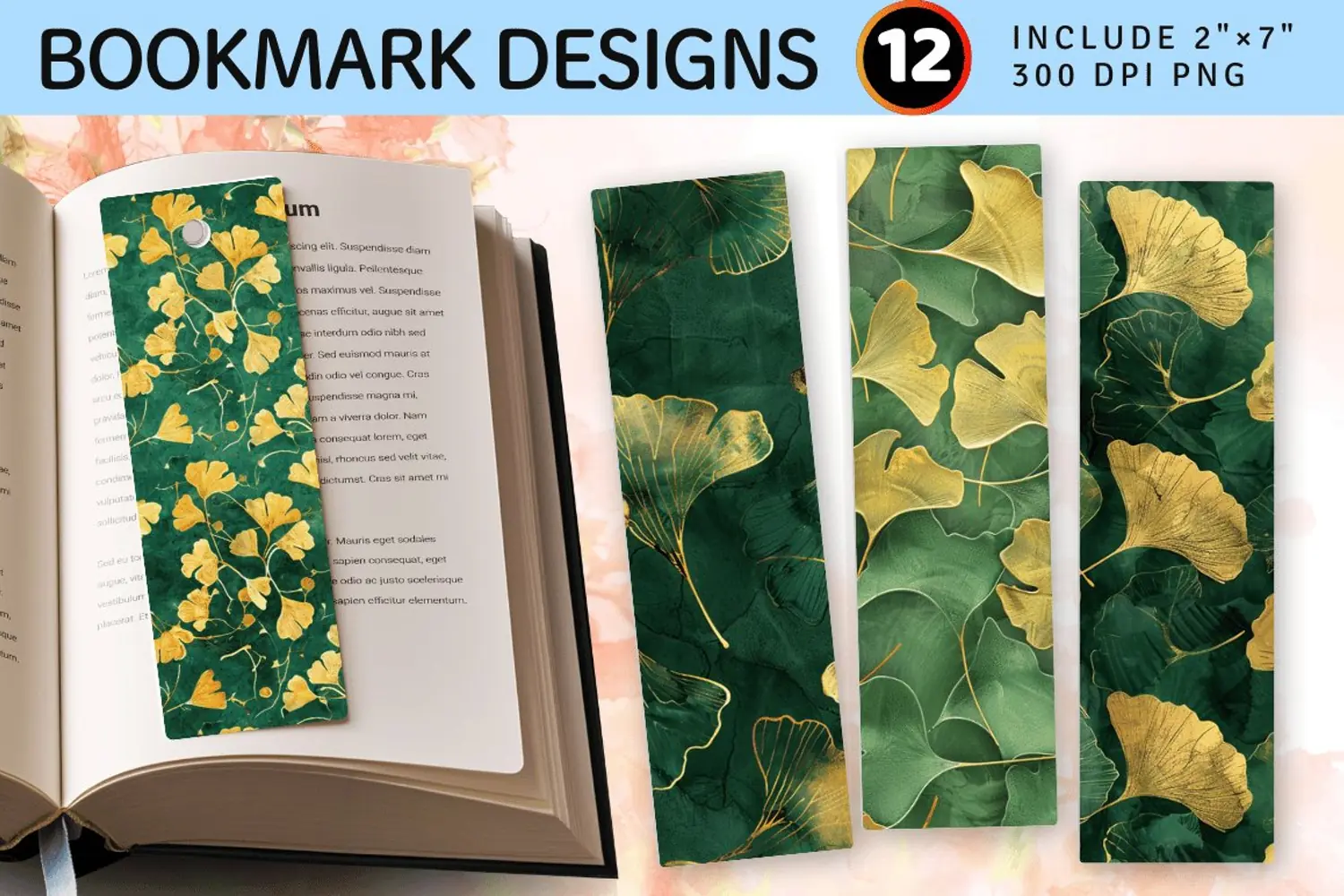 Green and Gold Ginkgo PNG Bookmark Sublimation Designs