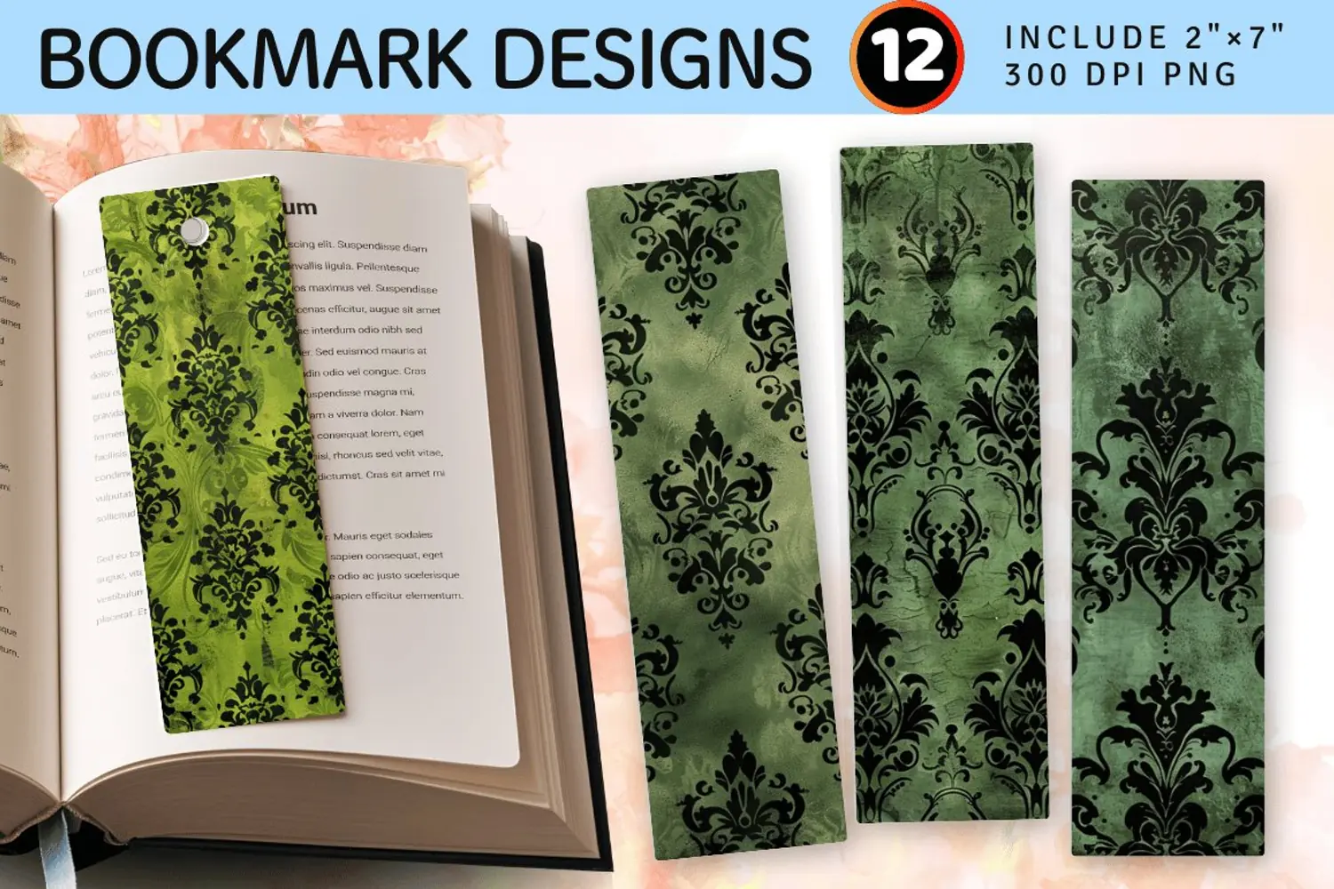 Similar Design Products to Green and Black Damask PNG Bookmark Sublimation Design