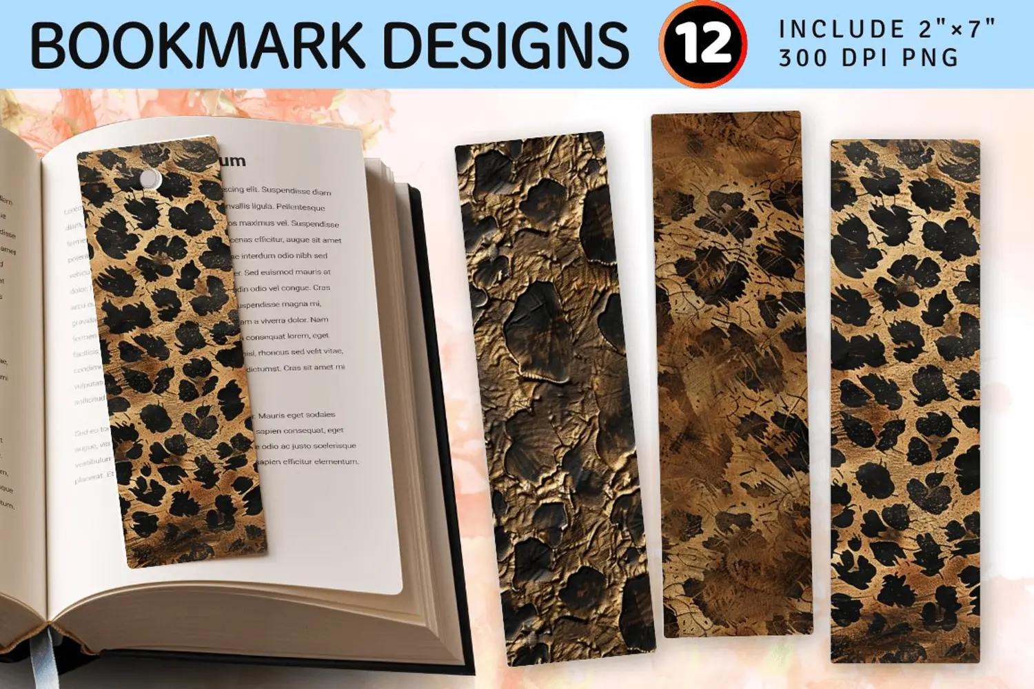Bronze Leopard PNG Bookmark Sublimation Designs