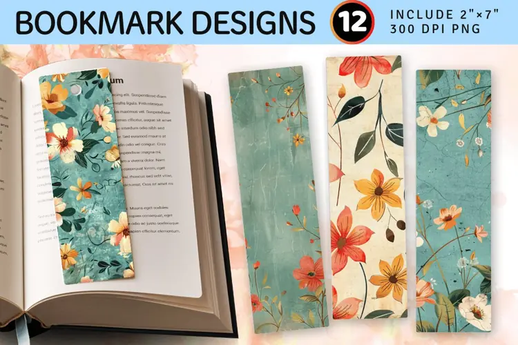 Whimsical Floral PNG Bookmark Sublimation Designs