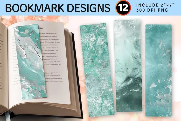 Seafoam and Silver PNG Bookmark Sublimation Designs
