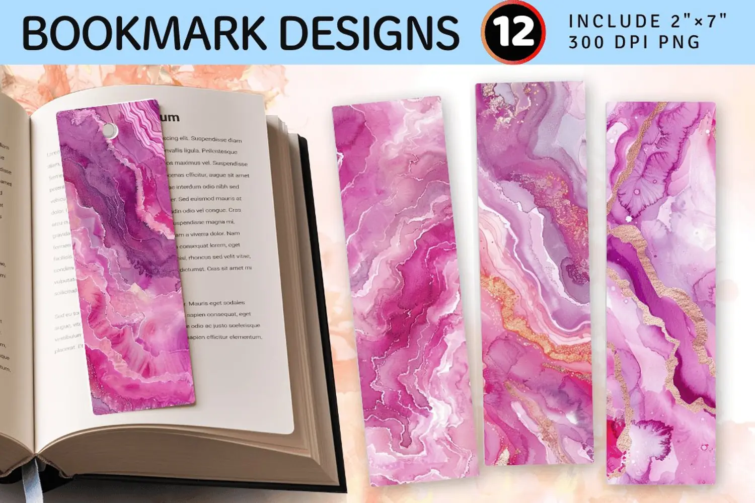 Pink Watercolor Geode PNG Bookmark Sublimation Designs