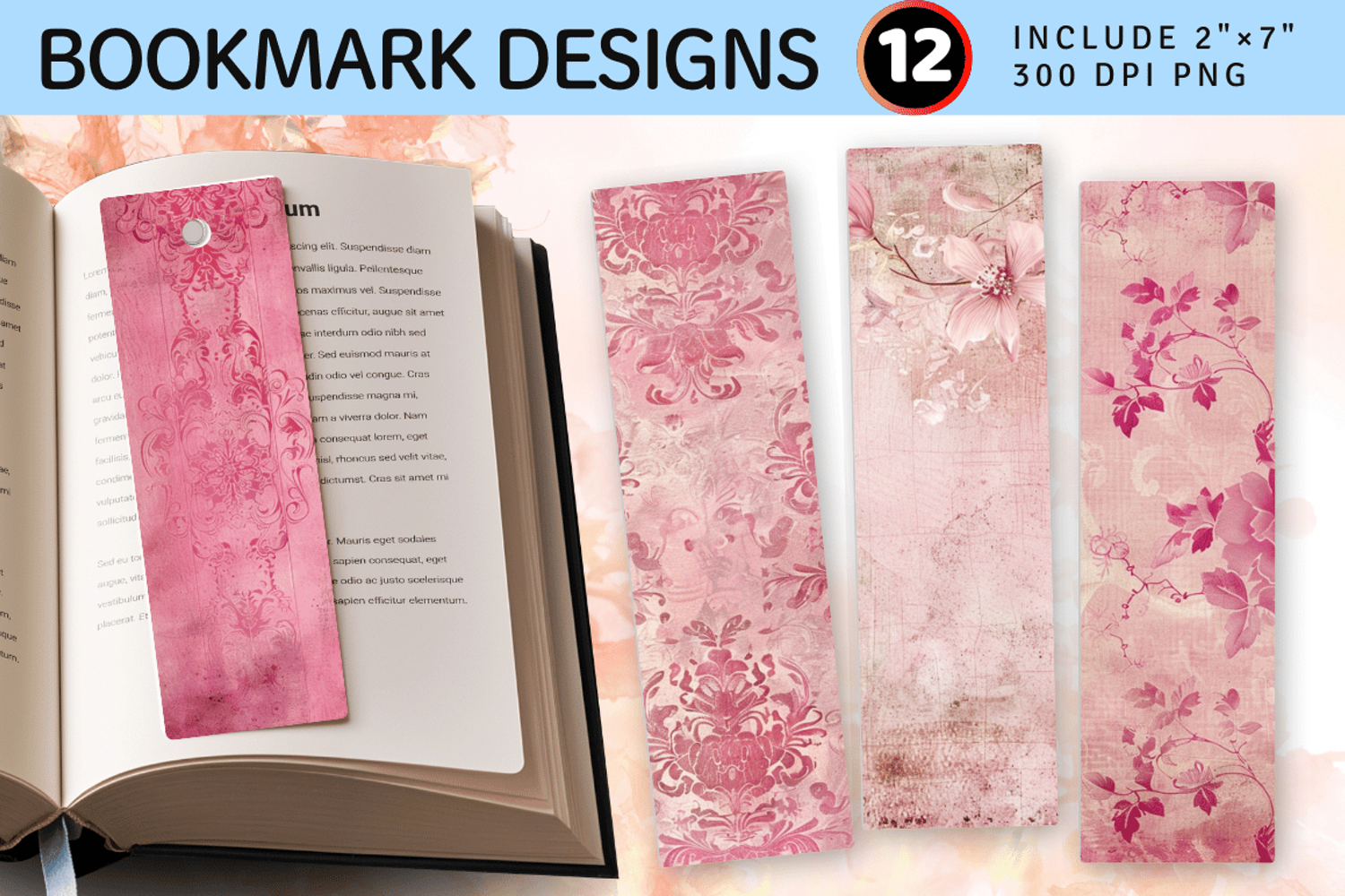 Antique Pink Romance PNG Bookmark Sublimation Designs