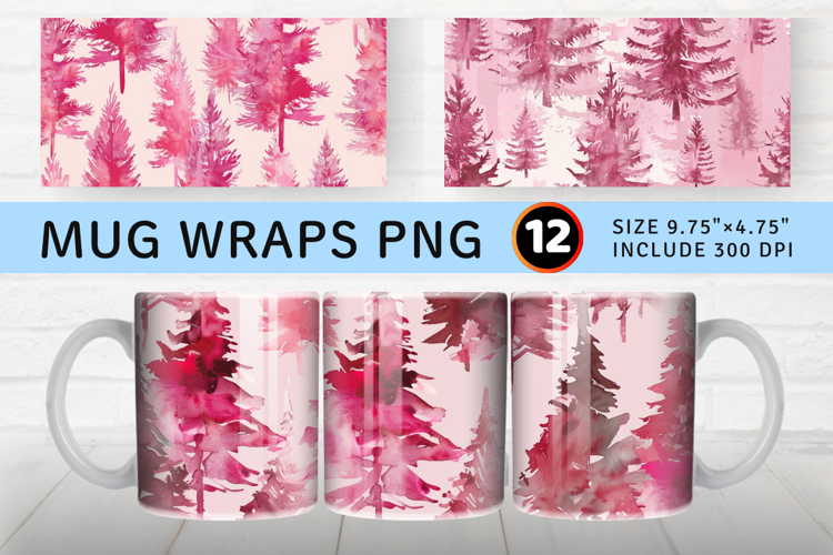 Pink Pine Trees Mug Wrap Sublimation Designs