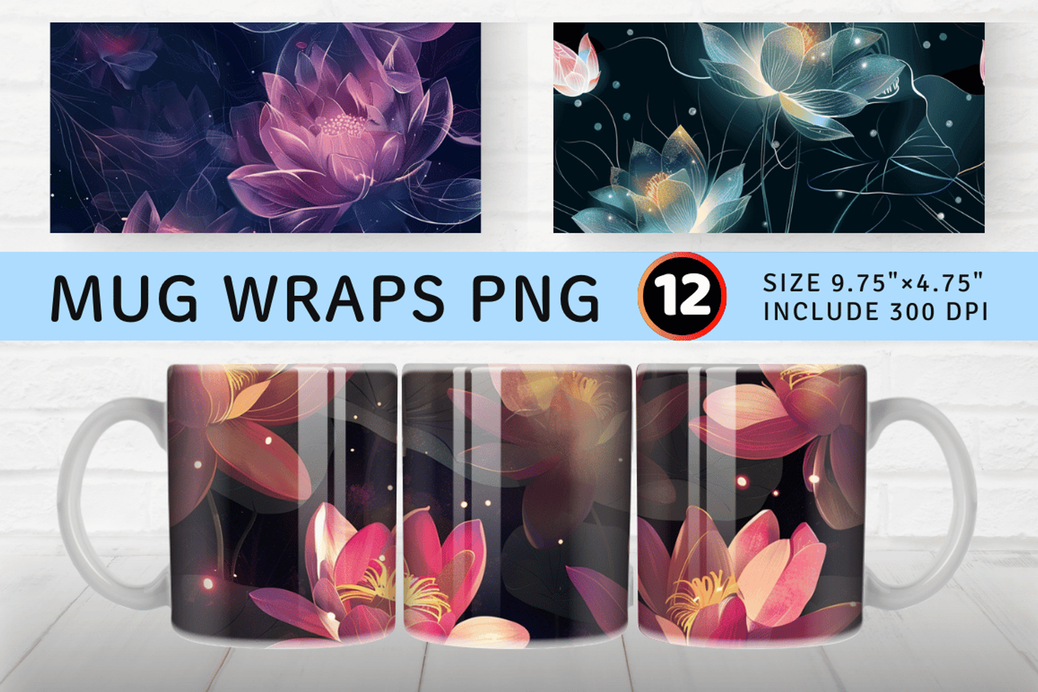 Mystical Lotus Flowers Mug Wrap Sublimation Designs