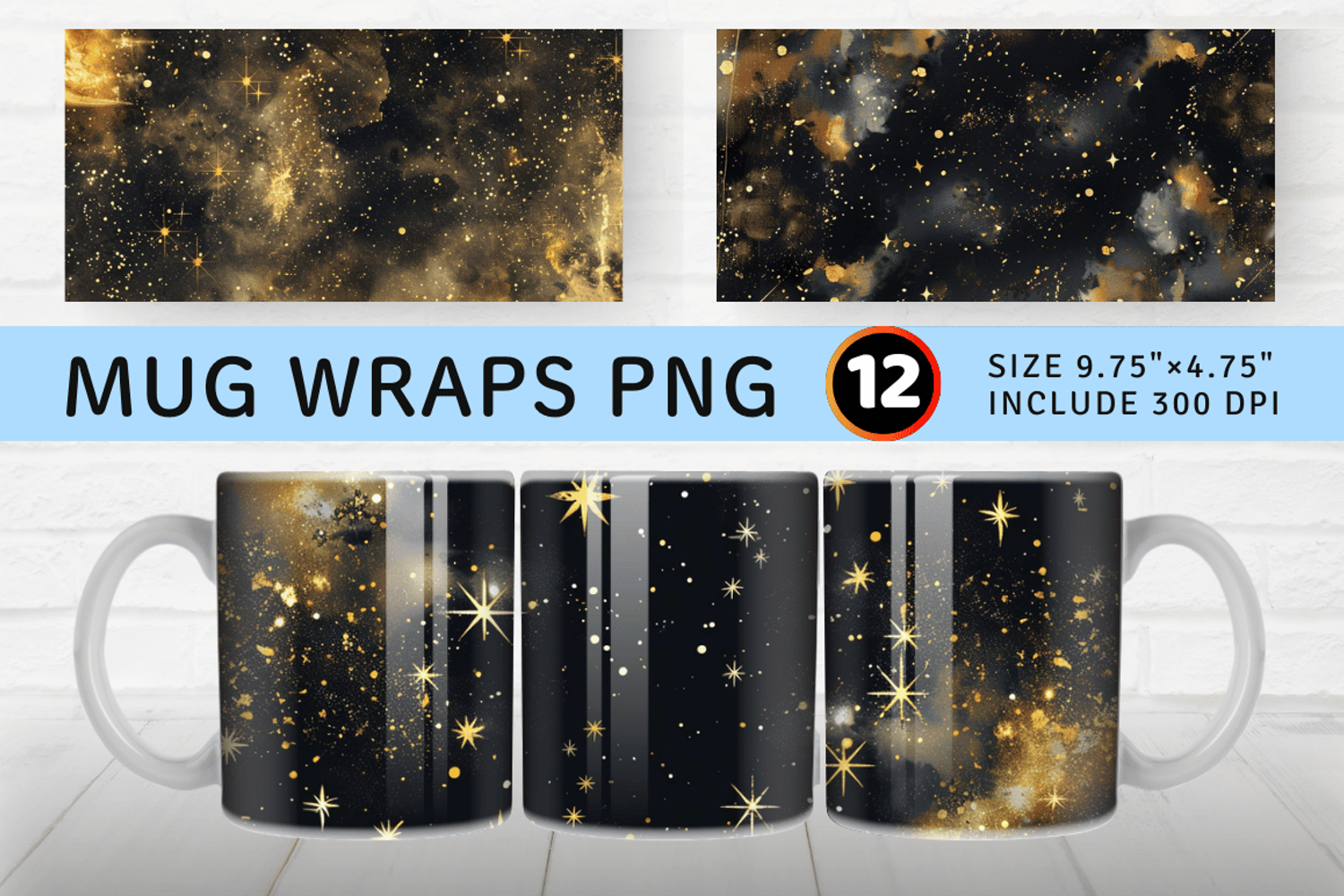 Gold Galaxy Night Mug Wrap Sublimation Designs