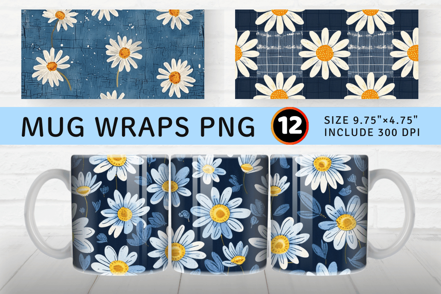 Tumbler Wrap Png Printable Mug Wrap Coffee Mug Wrap Design Sublimation Mug Wrap Png 15oz Mug Wrap Design Daisies Bloom Swatches Denim 11oz Mug Wrap Design Mug Wrap Png Sublimation Design Mug Wrap Design For Sublimation Digital Mug Wrap Design