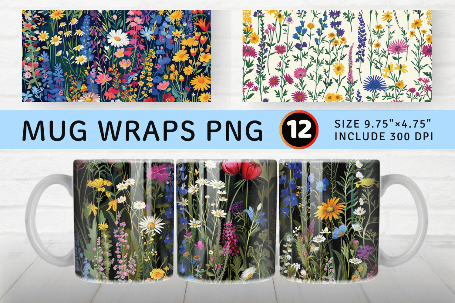 Wildflowers Garden Stitch Fabric Mug Wrap Sublimation Designs