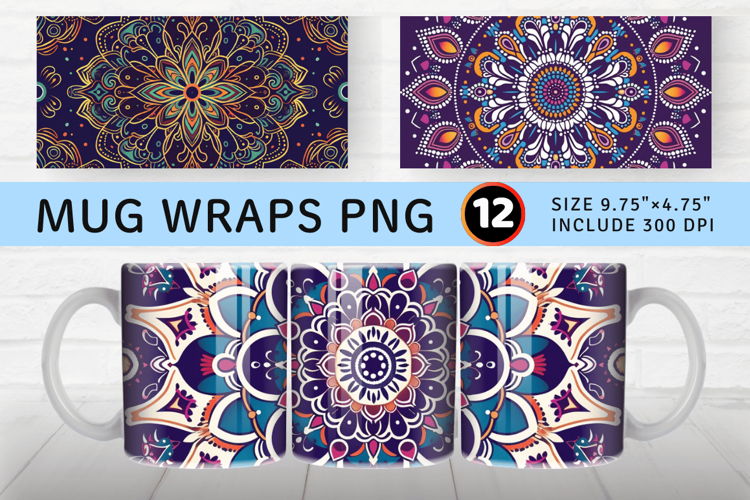 Abstract Boho Festive Mandala Mug Wrap Sublimation Designs