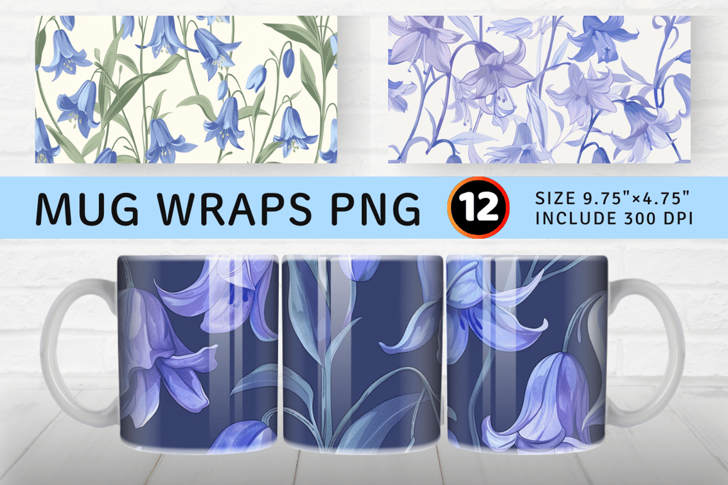 Delicate Bluebell Mug Wrap Sublimation Designs
