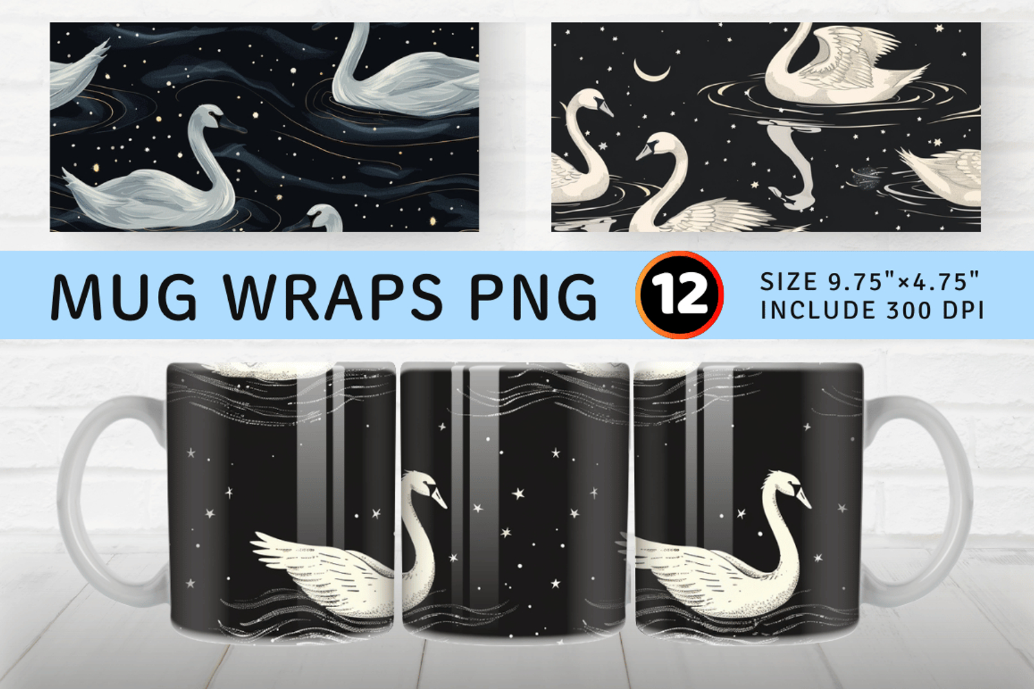 Night Swans Mug Wrap Sublimation Designs
