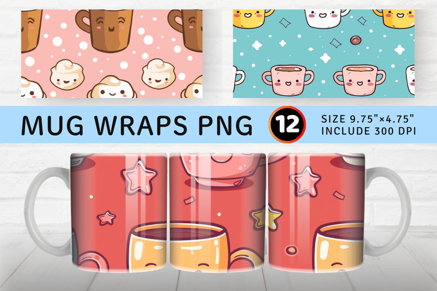 Kawaii Coffee Mug Wrap Sublimation Designs