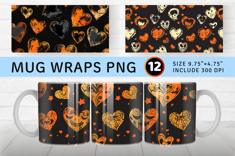 Halloween Hearts Mug Wrap Sublimation Designs