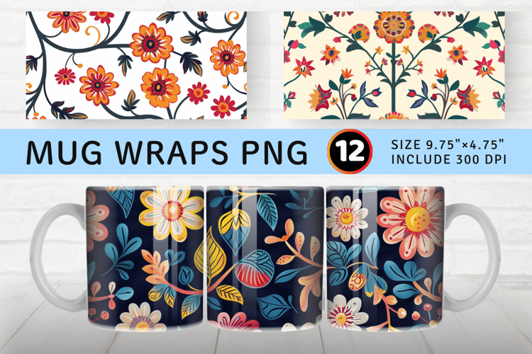 Meeras Indian Folk Blooms Mug Wrap Sublimation Designs
